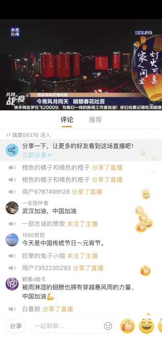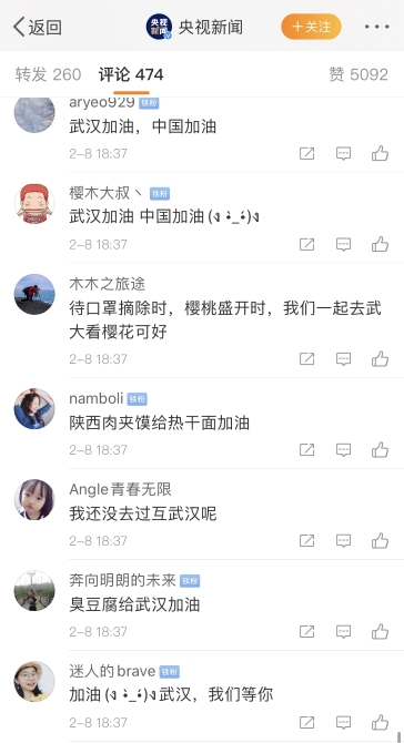 网友A吕静:我们扛过了初一,躲过了十五,相信一切都会好起来。中国加油,武汉加油!