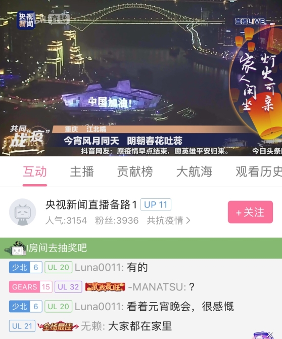 网友用爱筑梦:“迎来了鼠年第一个月圆之夜!愿此刻的所有坚守都是奔向以后的团圆!加油,武汉!加油,中国!”