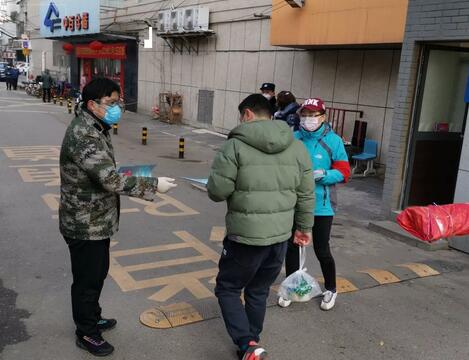 来到民意社区,我们生态环境局硚口区分局的同事和社区干部、公安派出所民警一起在社区入口设立卡点,开展疫情防控宣传、卡点值守和隔离观察人员帮扶等工作。民意社区距离这次疫情爆发源头----华南海鲜批发市场直线距离只有6公里,是高度危险区域,防控任务十分繁重。