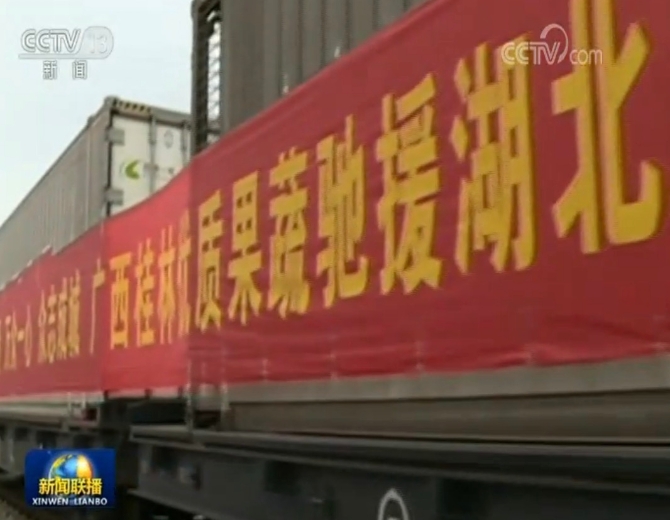 为支援湖北百姓日常生活,广西第三班果蔬物资专列启程,包括砂糖桔、萝卜、大白菜、香芹等200吨优质果蔬从桂林直发湖北咸宁。