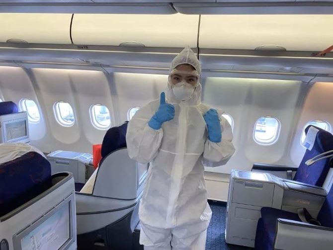 “接滞留同胞回家,我义不容辞; 祖国有需要,我义无反顾”。国航CA082航班执行赴日接回海外滞留的湖北籍旅客回家任务,飞机平稳降落至首都机场时已是2月6日的凌晨2点多,因为此次任务的特殊王婧与金凤组员们都要经历14天的隔离观察。对此王婧说道:“虽然要隔离14天,但我并不害怕,隔离结束后我还会继续请战的。”