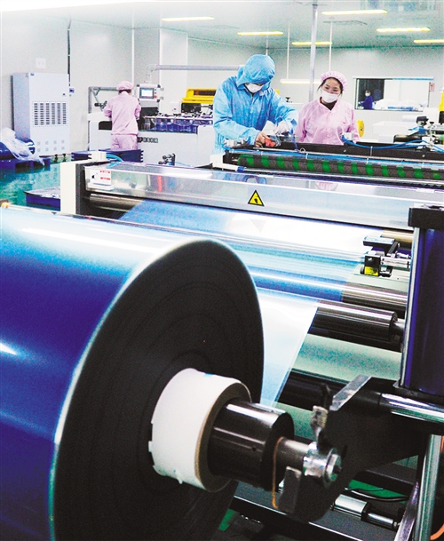 2月8日,河南省南阳柯丽尔科技有限公司克服困难组织生产,为全国各地生产急需的医用胶片。 崔培林摄(中经视觉)