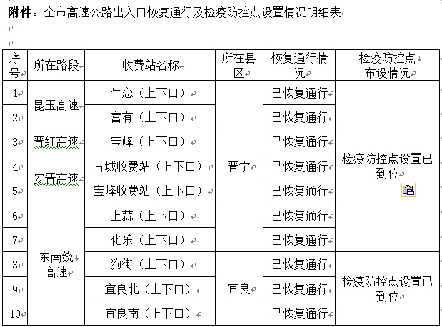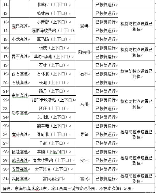 昆明辖区31个封闭高速公路出入口已全部恢复通行