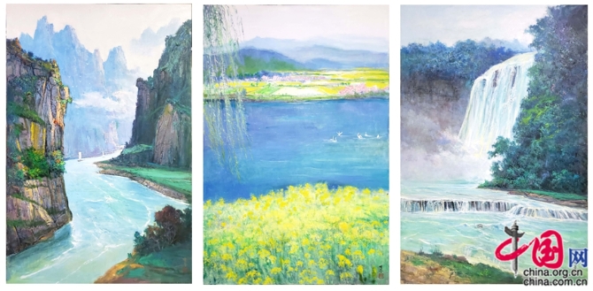 法国大皇宫参展作品左三:油画《黄果树大瀑布》100cmx140cm 2019年
