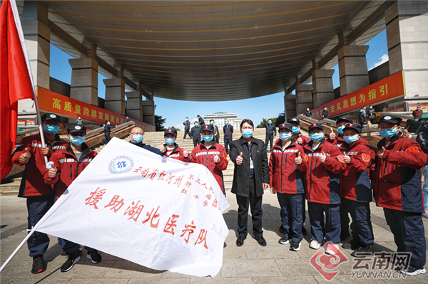 开远市人民医院派出了17名医护人员支援湖北。医疗队队长邹华伟表示:“抗击疫情是我们的天职。召必战,战必胜!一定会把大家平安带回来!”