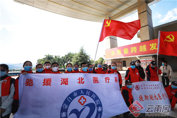 一方有难,八方支援。2月11日,昆明市从昆明市延安医院以及昆明市第一、第二、第四人民医院等8所医院,抽调出88位医护人员组成的医疗队完成集结。