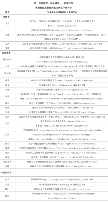 人社部公布失业保险稳岗返还网上申领平台(表)