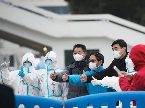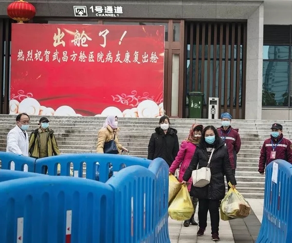 武昌方舱医院首批28名新冠肺炎轻症患者经过治疗出院。