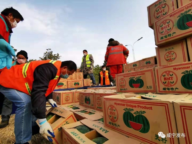 记者联系到了瑞丽市畹町长合商贸有限公司总经理陈知云,他说,本地商人和缅甸商人都十分关心湖北人民,由两国商人成立的中缅水果互助会决定从缅甸选取了150吨的新鲜西瓜支援咸宁,并承担了运费。