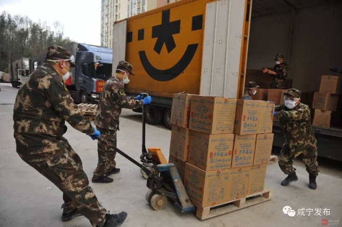武警咸宁市支队官兵出动参与物资卸车