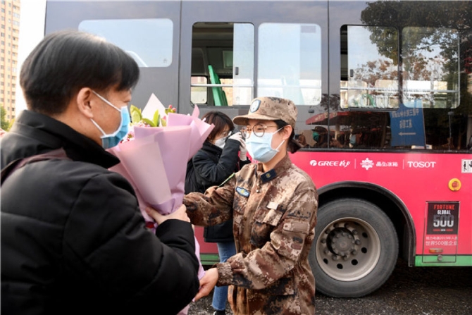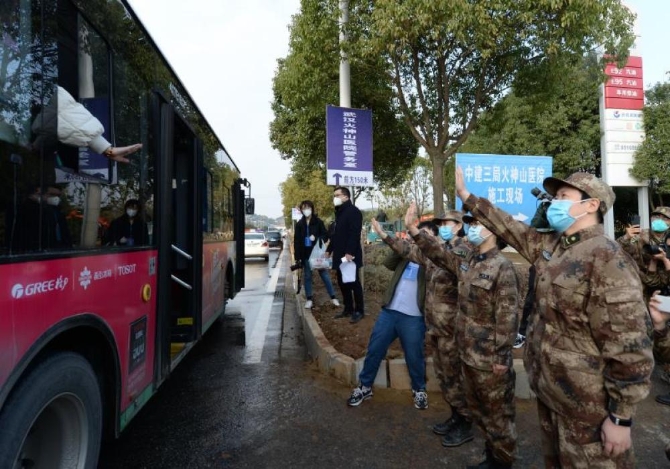 2月13日下午4时,经过火神山医院医护人员8天的精心诊治,7位新冠肺炎患者的临床症状和核酸检测达到出院指标,成为火神山医院第一批痊愈出院患者。临行前,他们连连向前来送行的医护人员鞠躬:感谢共产党,感谢解放军!