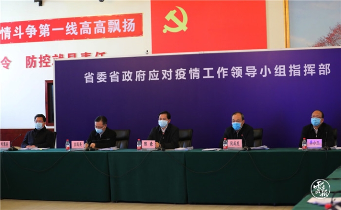 2月14日下午,省委书记陈豪在省委省政府应对新冠肺炎疫情工作领导小组指挥部调研时强调,要坚决贯彻落实习近平总书记在北京调研指导疫情防控工作时的重要讲话精神和中央政治局常委会会议精神,按照中央应对疫情工作领导小组部署,突出重点、统筹兼顾,分类指导、分区施策,坚持一手抓疫情防控、一手抓经济发展,切实把各项工作抓实、抓细、抓落地,坚决打赢疫情防控的人民战争、总体战、阻击战,有序组织复工复产,努力保持经济平稳运行。