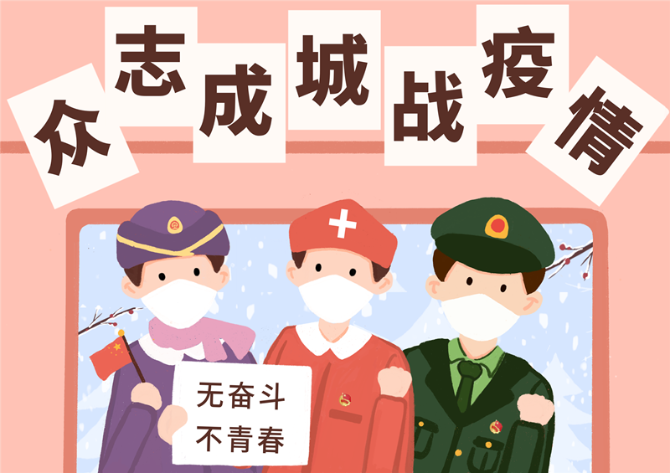 沧海横流共克时艰,绘就青春本色;疫情肆虐矢志向前,彰显时代荣光。无数逆行向前的青年,脱离安全区、舒适圈,用勇敢和担当让青春的号角吹遍祖国大地,也为新时代新青年精神标注了前行的坐标和航向。在“战疫”的逆行道上,青年用实际行动汇聚成强大的力量,乌云终将消散,天空定会放晴!(王凯磊)