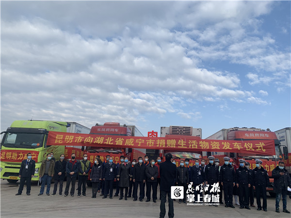 昆明信息港讯 (昆明日报 全媒体记者李双双) 2月15日早上9点, 6辆冷链物流车从昆明出发,预计30个小时后,车上由昆明市向咸宁市捐赠的40吨生猪肉、56吨鸡肉将运抵咸宁,第一时间分配给一线防控工作者。