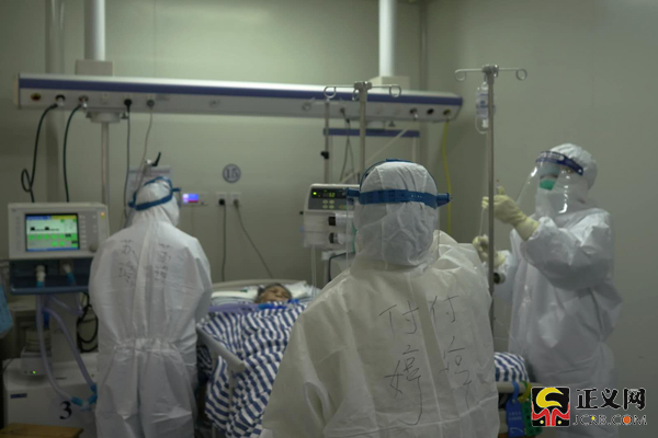 在病房,医务人员来自不同医院,互不认识。加之厚厚的防护服,根本无法辨认彼此,防护服上标记的名字,就是他们的名片。