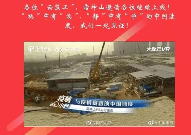 利用中国移动5G网络,通过咪咕视频向人民日报、新华社、央视新闻、学习强国等超过20家主流媒体实时高清直播火神山、雷神山医院建设进展情况,截止2月10日,总观看人次达到4.9亿。