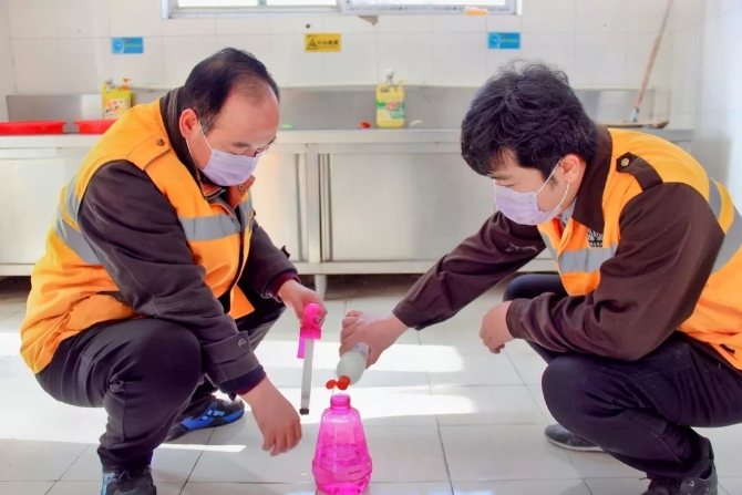 新冠肺炎疫情发生后,为防止作业期间发生群体性感染事件,张新超要求儿子张恒斌带头,严格执行测温制度。父子俩每天定时对办公室、活动室等人员聚集场所进行消毒。