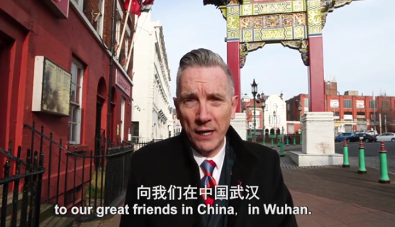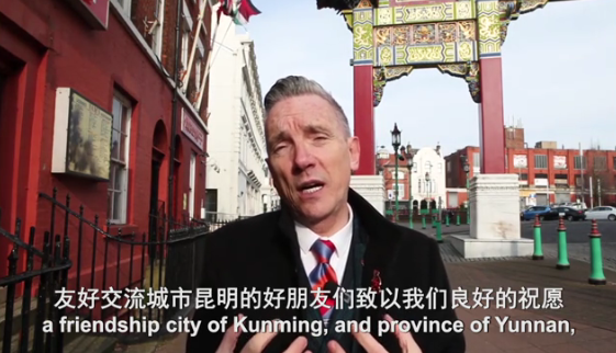 利物浦副市长葛瑞·米勒通过一则视频,向中国武汉和利物浦友好交流城市昆明问好。