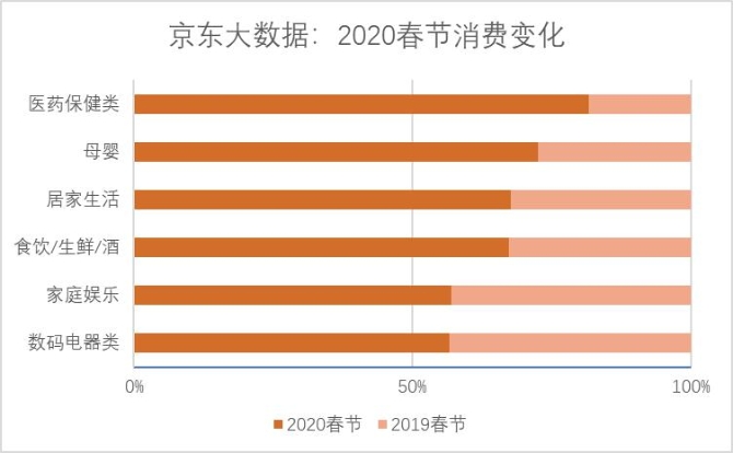 另据苏宁数据,今年春节期间,维C销量同比增长了421%,消毒洗手液销量猛增2315%。为阻隔空气传染病毒,杀菌小家电销量也明显上涨。苏宁数据显示,消毒柜销量同比增长205%,洗碗机搜索量同比增长283%,干衣机的销量同比增长 36%,空气净化器销量同比增长83%,壁挂新风及新风系统同比销售增长304%。