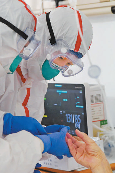 在查房时,王琼娅曾经“顺带”探望过丈夫两次。“我问,你怎么样?他因为高烧不太清醒,就点点头,意思是让我放心。”在那之后,王琼娅再没有陪在丈夫身边。“我真的没时间去看,而且还要浪费防护服,我舍不得。”她更相信,有同事的专业救治,丈夫能挺过去。