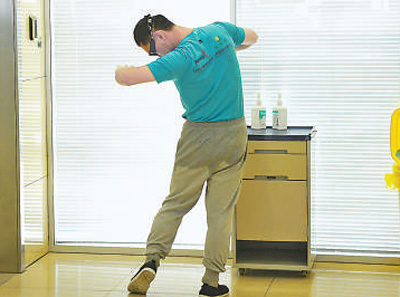 近日,在武汉协和医院,一名援鄂北京医疗队队员脱下防护服后发现浑身已经被汗浸湿。和冠欣摄(影像中国)