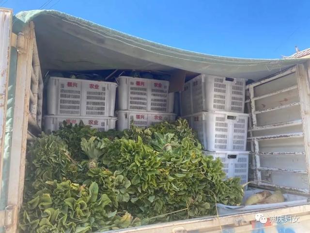 ▲香格里拉市金江镇新建村巾帼志愿者谢文彬捐赠2吨蔬菜,经市防疫指挥部对接后捐赠给小中甸镇。