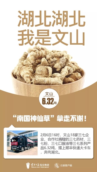 云南为着湖北伸出援助之手