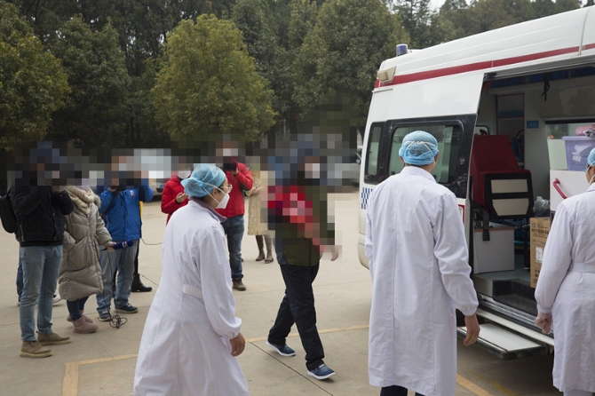 第一位,56岁男性患者,1月22日与由武汉自驾出发到云南旅游,1月27日出现发热症状,从湖北籍人员留观点由120转入昆明市第三人民医院发热门诊就诊,查血常规、肺部影像学等检查有新冠肺炎的特征,收入留观病房,1月29日经核酸检测阳性确诊,转入昆明市第三人民医院隔离病区治疗。