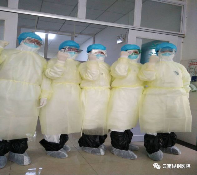 护士长让我们去病房看看的情况,我立刻报名,马上准备穿上装备到达前线,这时刚好兄弟医院延安医院、昆钢医院的老师也来到五区,你一句我一下的帮助我穿上防护服,最后一个老师抱着我说不要紧张,我们都在,我们现在是一家人,有我们呢,内心一股暖流油然而起。