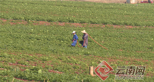 红河州建水县马铃薯已经进入中耕管理的重要阶段,在甸尾乡成片的马铃薯地里,农户正在忙着给马铃薯除草、追肥、培土和灌溉。村民李德志家今年种了六亩马铃薯,他说:“今年虽然发生了疫情,但我们在加强疫情防控工作的同时,也不耽搁我们正常的生产生活。”