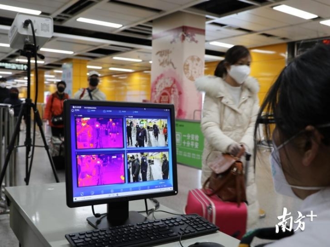 为什么进出火车站不需要用额温枪测体温?记者在广州南站看到,该站在进站口、到达口均设置了红外体温检测仪,旅客经过时,一旁工作人员屏幕上会实时显示旅客体温。如果旅客体温超过37.5度,工作人员会用额温枪对旅客再次检测,在确认发热和询问流行病学史后,发热旅客会被送到广州南站西门外的医疗点。