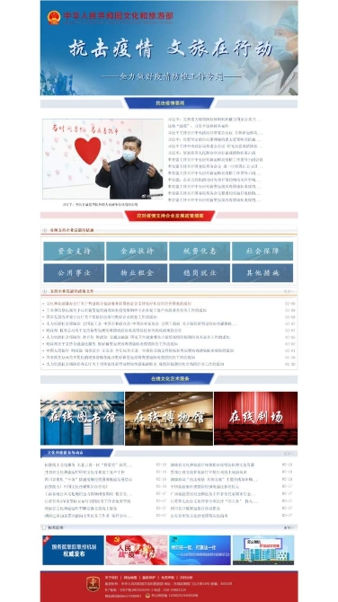 疫情发生以后,文化和旅游部迅速调集和整合数字文化资源,通过文化和旅游部门户网站等,推出了“在线图书馆”——《国图公开课》等,“在线博物馆”——《国家博物馆360虚拟参观》《全国博物馆网上展览平台》《故宫数字文物库》等一系列在线公共文化服务内容,丰富了人民群众的精神文化生活,受到广泛的好评,取得良好效果。