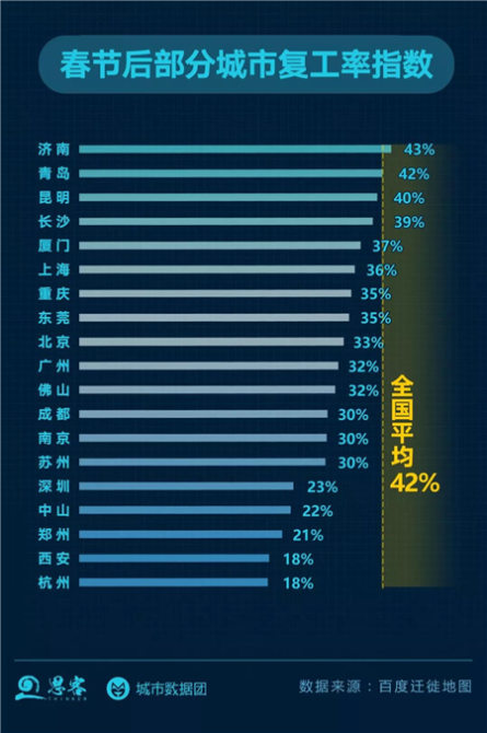 随着“复工”键开启,全国各地复工复产情况怎么样?近日,新华社国家高端智库舆情研究中心——新华网思客通过多维度的大数据分析显示,昆明复工率达到40%,位列全国城市第三。