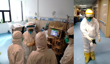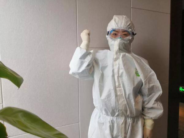 讲述者:唐晓培 北大医疗鲁中医院血液风湿科护士2020年2月11日 周二 阴 武汉第6天早上6:30我们坐上班车,7:10到达武汉客厅方舱医院,7:15开始穿防护服,今天的护目镜是84消毒水浸泡过的,还没有晾干,带上之后双眼被消毒水熏得睁不开眼睛,疼得直流眼泪,感觉非常不舒服,同伴也出现了类似的问题,眼泪已经把消毒水冲洗干净存在护目镜里,消毒水的味道熏得有点恶心头晕,6个小时的工作下来,不知道是泪水还是汗水,只觉得护目镜里模模糊糊的全是雾状。进入舱里与同事交接班,给还没有吃早饭的患者发放早饭,测量生命体征,血压。今天A区有178个病人,我们4个人护理大约70个患者,我负责的一名患者65岁,出现了喘憋呼吸困难,值班医生立刻给予转院,密切观察患者的生命体征,10分钟后救护车到达医院协助患者转走。11:10午餐来了,发午餐牛奶时,患者看到我们发饭很辛苦,也对我们说你们吃吧,你们吃吧,我们却鼓励患者,你们好好吃饭增加抵抗力,加油加油!早日康复!身上的汗水流下来,视线一直处于模糊中,活动后的我呼吸困难,头晕。这个时候我的小伙伴瑞瑞出现了头晕恶心,已经不能工作,我协助他在护士站里休息,就这样我们继续做我们下一步的工作发药,与患者交谈,协助他们解决生活中的一些小问题。到了下班的时间我们出舱,这个时候瑞瑞的眼睛通红胀痛,急忙联系了医生给予用药处理。到达酒店已经是下午4:00的时间,洗澡,好好的吃顿饭,晚上总结今天的工作。从早上出门到回酒店整整10个小时的时间,我们在这10个小时里不吃不喝不尿,居然我都能做到。