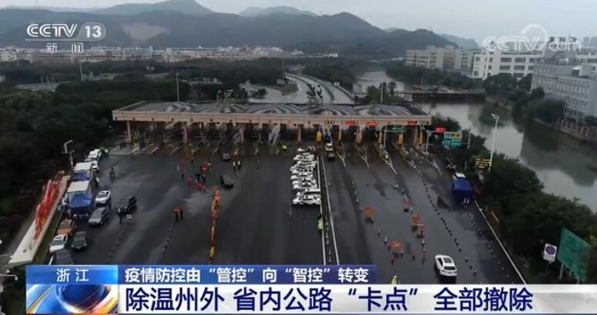 从现在到2月底是浙江实行分区分级精准防控的关键阶段,浙江省决定全面打通省内交通要道,全省除温州以外,立即取消省内高速公路、普通国省道以及农村公路的卡点,除了省际检查点和温州市内检查点以外,浙江省内其他防疫检查点要在今天也就是2月19日14时前全部撤除,并同步恢复关闭的高速公路出入口。