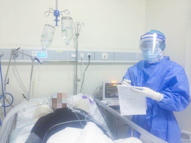“先让护士吸痰,我马上进去”,我的呼吸也因紧张变得急促起来。我立刻去更衣间换上防护服,平时穿一套防护装备的时间大概得30分钟,这一次仅用了15分钟就穿戴完毕,然后迫不及待地冲进151床病人的房间。