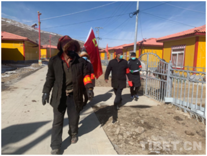 不论是在甘孜县广袤的牧区还是在百里青稞画廊间,一顶顶帐篷、一栋栋藏房、一户户农牧民群众都是党员巡防队的牵挂,他们充分利用村村响、“小蜜蜂”、宣传单、微信群等形式,每天用汉藏双语宣传有关防控新型冠状病毒的政策措施,做到了家喻户晓,人人皆知,普遍提高了群众自我护意识。同时,各临时党支部充分发挥坚强战斗堡垒作用和密切联系群众优势,实施群防、群控、群治的“三群”措施,分别建立外出返乡人员、居家隔离、村民出入管控“三本”台账,对全村情况进行动态管理,紧紧依靠人民群众坚决打赢疫情防控阻击战,让党旗在疫情斗争第一线高高飘扬。