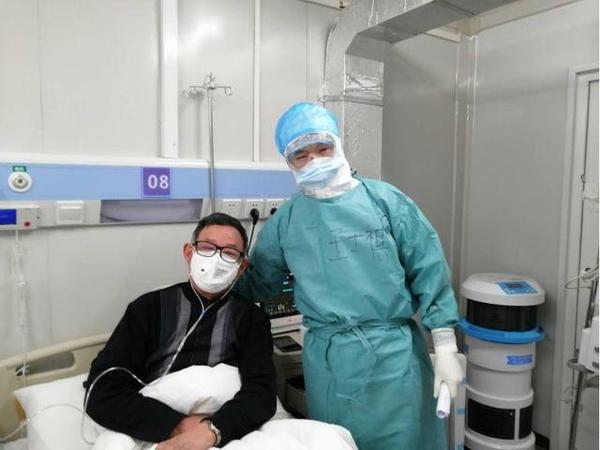 生日当天,他穿着厚厚的防护服巡视了60名患者,不知不觉已经工作近8小时了。夜色渐浓,医院外由于刚刚下过雨,能见度越来越低,病房里却闷热潮湿,耳边传来鼓风机巨大的轰鸣,让王士祺有些喘不过来气。突然,他听闻一名老先生也是今天生日,心想:这真是缘分,一个人在这里治疗,肯定比我更需要生日的祝福。赶忙走到老人的病区,留下了和80岁患者共过生日的珍贵合影。
