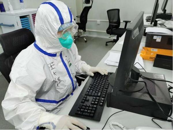 进入火神山医院的每一天都像在打仗,压力不仅来自患者复杂的病情,还来自和患者的沟通安抚上。医护人员戴着三层帽子,严重影响听力,两层口罩也影响发音,必须凑得很近才听得到说得清。有时患者很紧张不能准确描述病情,有些当地的患者只会说方言也听不懂医嘱。王士祺一面安慰他们减轻压力,一面问清病情进展,制定个体化治疗方案。每天晚上下班后还要查资料,不断修正治疗方案。