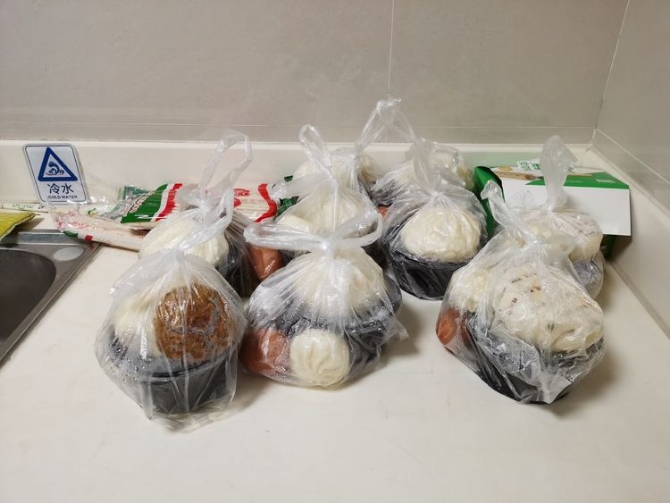 工作人员送来的早餐