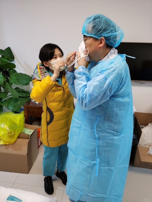 我们这个团队是暖心的,感控专家刘梦迪来指导上班人员防护,认真细致的检查穿戴的每一个环节,力争做到万无一失。