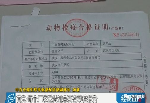 中百仓储生鲜事业部配送部副部长汤波:“首先,每个厂家送货过来要有动检报告还要有非洲猪瘟的检测报告以及车辆消毒的检测报告我们根据这些报告再进行收货如果没有报告我们是不进行收货的”