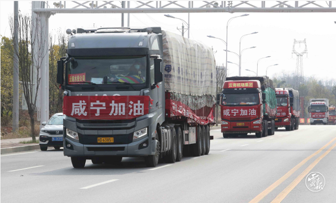 23日上午10点10分,云南54辆装满2842万元物资的货车缓缓驶入咸宁高速马桥收费站,爱心车队出收费站时,执勤点民警自发列队敬礼……这支云南援助咸宁物资车队于21日下午15时从昆明出发,日夜兼程奔波2000公里,安全抵达咸宁。