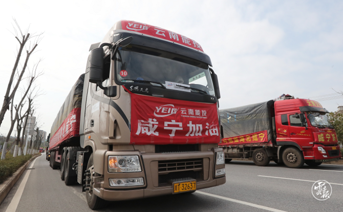 大米、食用油、火腿肠、棉衣,医用消毒液、防护服、口罩、甚至还有春耕需要的化肥、农药。这批来自云南的物资应有尽有! 云南农垦物流公司副总经理易晨曦是这次车队负责人,他说,这批援助物资由云南省国资委牵头,省内多家国资企业积极参加,筹集了医疗物资、生活物资、生产物资等价值共计2842万元的物资,并分别从铁路、高速公路两条运输线路发往咸宁。今天到达的这批物资,由易晨曦负责一路押送到咸宁,明天还将有三车物资陆续到达。“请咸宁人民放心,4800万云南人是他们最坚强的后盾!这些物资代表云南人满满的爱,咸宁加油,相信在云南和咸宁两地人民的共同努力下,我们一定渡过难关,战胜这场疫战。”易晨曦说。
