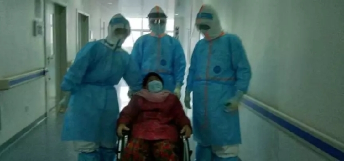 其中一位患者,是家在江汉区88岁的老婆婆,2月1日开始出现发热38.9℃,年龄大且病情复杂,合并高血压、糖尿病等并发症,经疫情防控指挥部统一安排,收入我病区。
