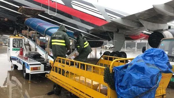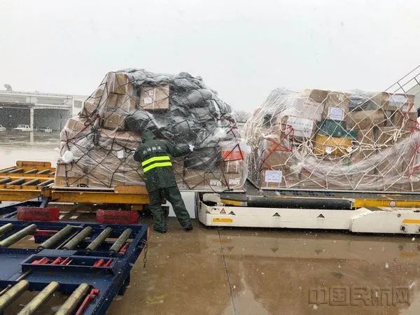 大风夹杂着雨雪打在他们身上,冻红了他们的手,也全然顾不上,当天他们共完成241.5吨的全货机物资保障任务。