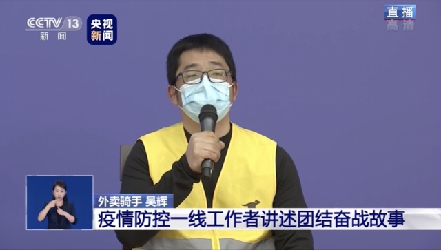 1月26日,吴辉接到一单跑腿帮送,备注里写着:“妈妈做的饭给爸爸送去,爸爸是前线医生,辛苦外卖小哥了。”那一刻,吴辉想要流泪。