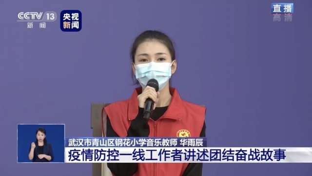 武汉市青山区钢花小学音乐教师华雨辰是“全能志愿者”,司机、搬运工、体温检测员、方舱医院播音员,只要有需要,她都能立即顶上。