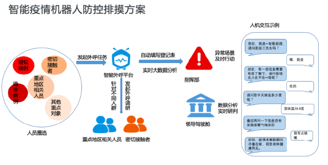 在经历了5天彻夜研发之后,达摩院于1月27日推出智能疫情机器人,率先落地浙江、黑龙江和山东济南三地。随着疫情防控阻击战的深入,各地在开展地毯式调研排摸、医学跟踪外呼等工作时,纷纷遭遇人力不足的困难。挨家挨户上门沟通的方式不仅效率低下,还会加大接触性感染风险。