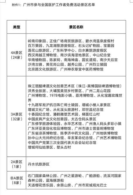 在本次抗击新冠肺炎疫情战役中,全国医护人员坚守第一线,做出了巨大的贡献。为感谢奋战一线的医护人员,致敬最美“逆行者”,广州地区旅游景区协会发动旗下成员景区对医护人员免费开放。据广州地区旅游景区协会介绍,截至发稿时为止,参与此次活动的景区数量已达65家(含57家A级景区),名单还将继续更新。